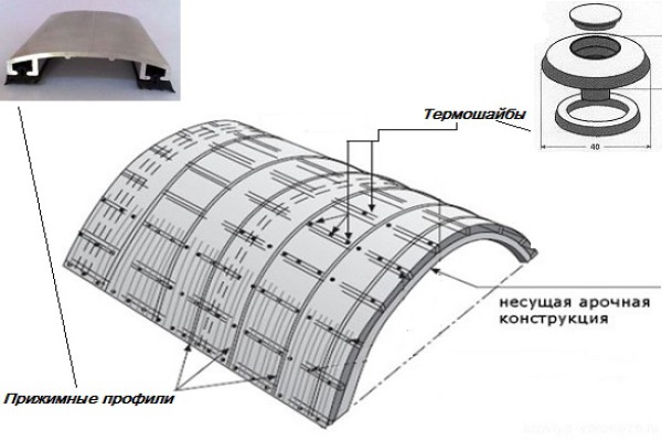 - Термошайбы, необходимые для герметизации мест соединения и защиты поликарбоната от порчи.