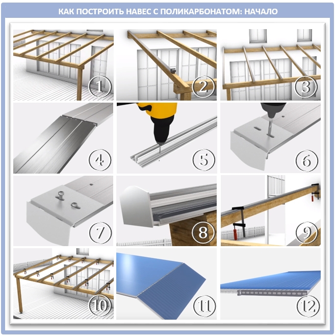 Чтобы выполнить инструкцию производителей, как правильно укладывать поликарбонат на навес или другие объекты, нужно подготовить:
