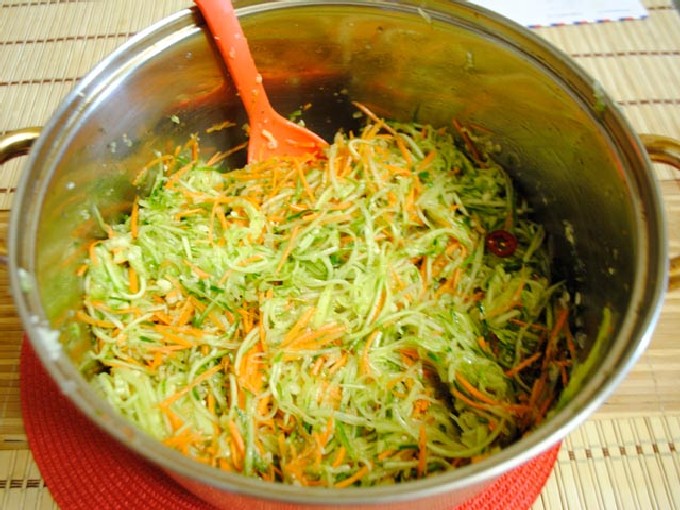 Отправляем пикантные ингредиенты к моркови и огурцам.