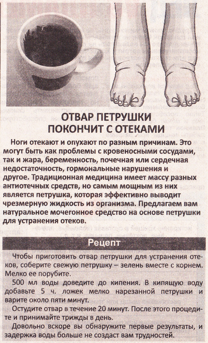Петрушка содержит минералы магния и калия, которые уменьшают отек ног и рук во время беременности.