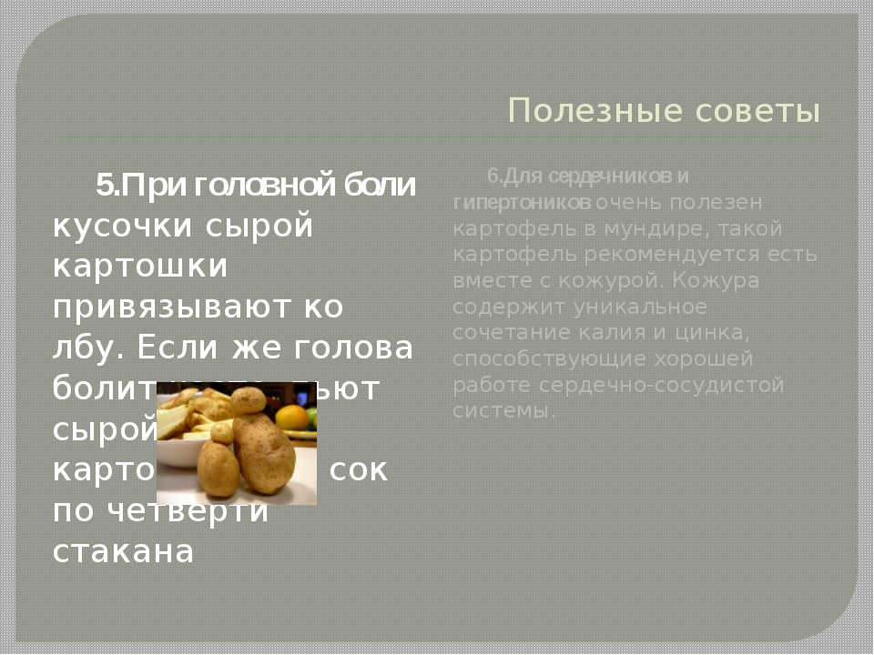 Так что даже проросший весенний картофель опасности почти не представляет. Чтобы всерьёз о ней говорить, нужно съесть несколько килограммов проросшего неочищенного овоща в сыром виде. Из всего вышесказанного можно сделать вывод, что, в принципе, проросшую картошку есть можно. Ощутимый вред такая пища вам вряд ли причинит, однако и пользы от неё не стоит ждать практически никакой.