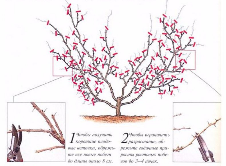 Кустарник старательно наращивал молодую поросль, образовывал цветоносы и радовал спелыми, сочными и полезными ягодами. По окончании плодоношения и сброса листвы необходимо проводить обрезку. Обрезают ветви для решения нескольких задач: