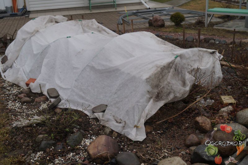 Чем больше площадь места, укрываемого лутрасилом, тем лучше перезимуют растения.