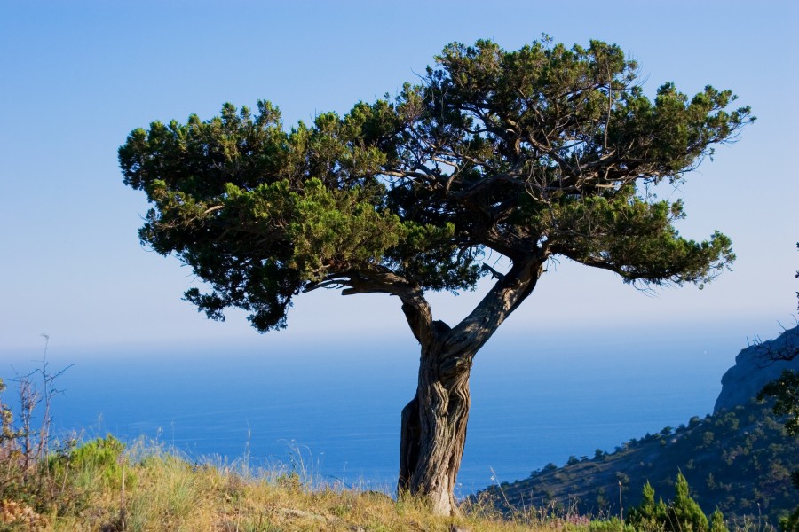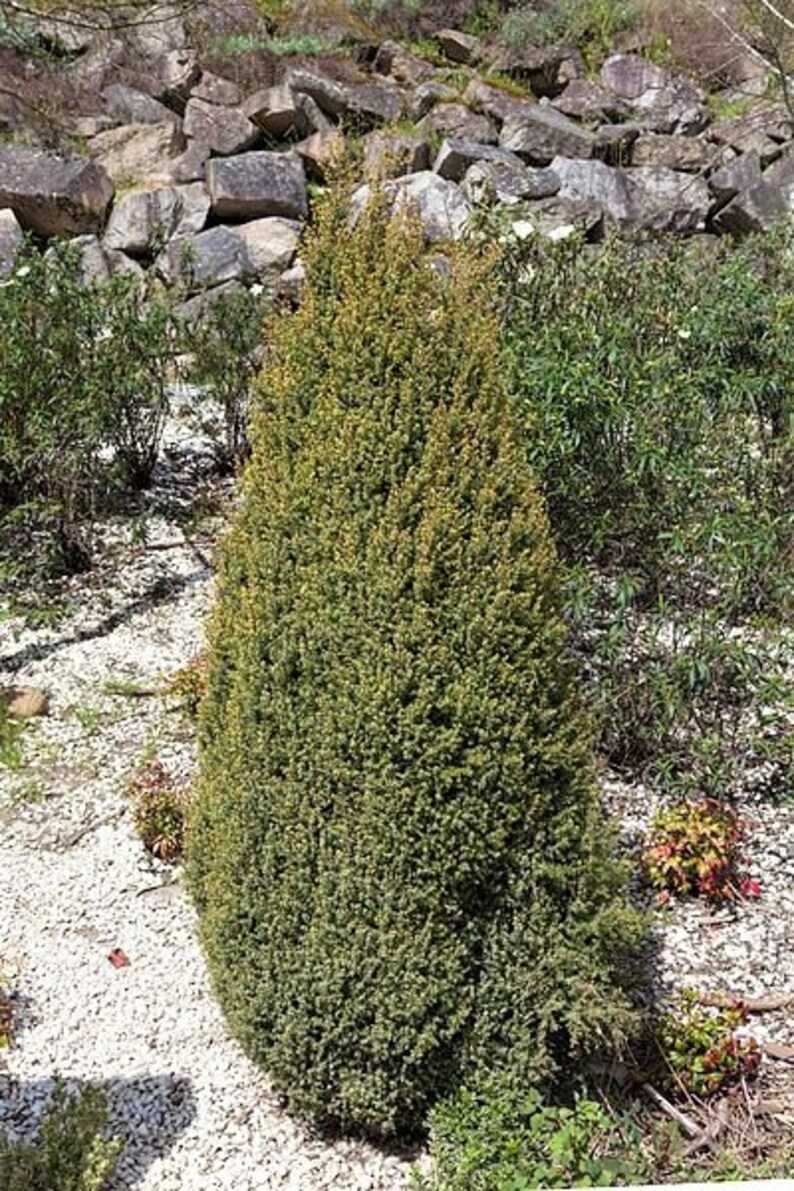 Внимания заслуживает и твердый можжевельник. Это дерево, достигающее большой высоты и имеющее плотную крону пирамидальной формы. Твердый можжевельник покрывается зеленой хвоей, имеющей легкий желтый окрас.