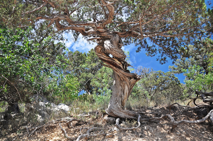 - Калифорнийский можжевельник — это гораздо меньший вид можжевельника в дикой природе, вырастающий только до 26 футов в высоту и, в редких случаях, до 33 футов. Наиболее примечательной характеристикой можжевельника Калифорнии является пепельно-серая кора, которая выглядит так, будто ее измельчили.