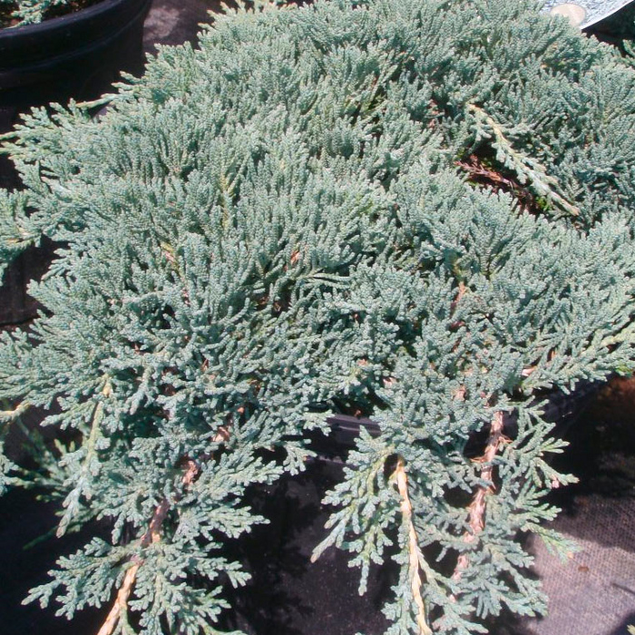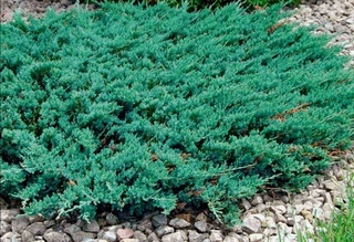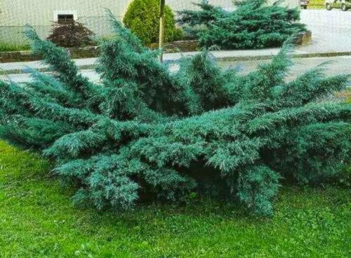 - Blue Carpet («Блю Карпет») представляет собой разновидность чешуйчатого низкорослого можжевельника. Кустарник высотой до 30 м и шириной до 1,5 м в диаметре, красивой голубой расцветки, медленно разрастается.