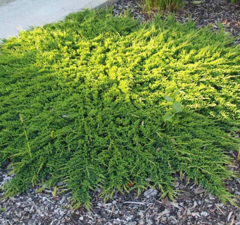 Кусты у этого можжевельника приземистые, высотой около 30 см и диаметром 1,8 м. Хвоинки мягкие, светло-зеленые. Растет довольно быстро. А еще у него нет мощных сучьев, так что он больше других похож на травяной газон.