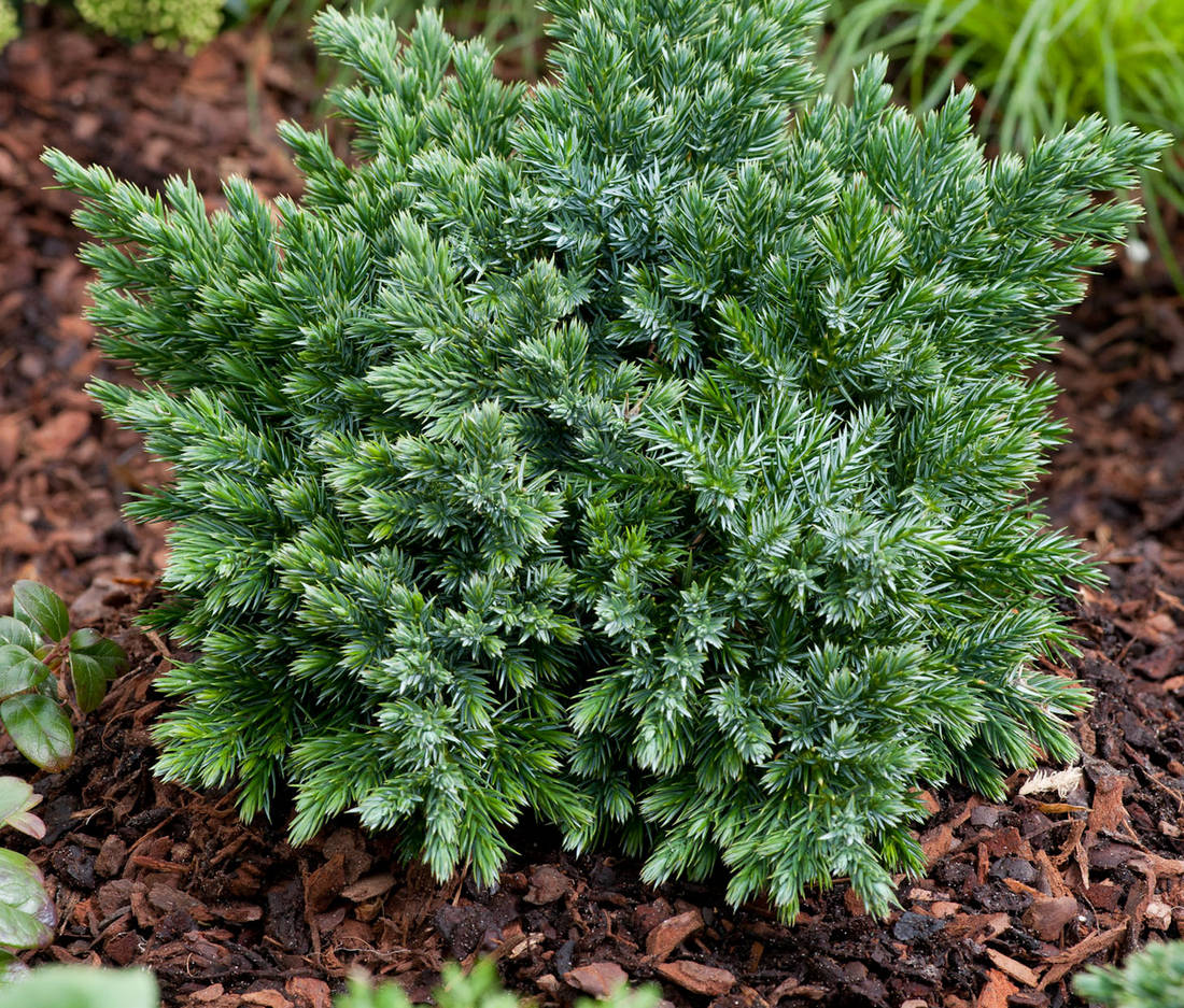 Карликовая ползучая форма можжевельника, высотой не больше 30 см, шириной до 1,5 м. Крона плоская. Иголки мягкие, совсем неколючие. Очень неприхотливый и выносливый. Полива не требует, зимой не подмерзает. Его часто используют при озеленении крыш, а ведь условия там более суровые, чем на земле.