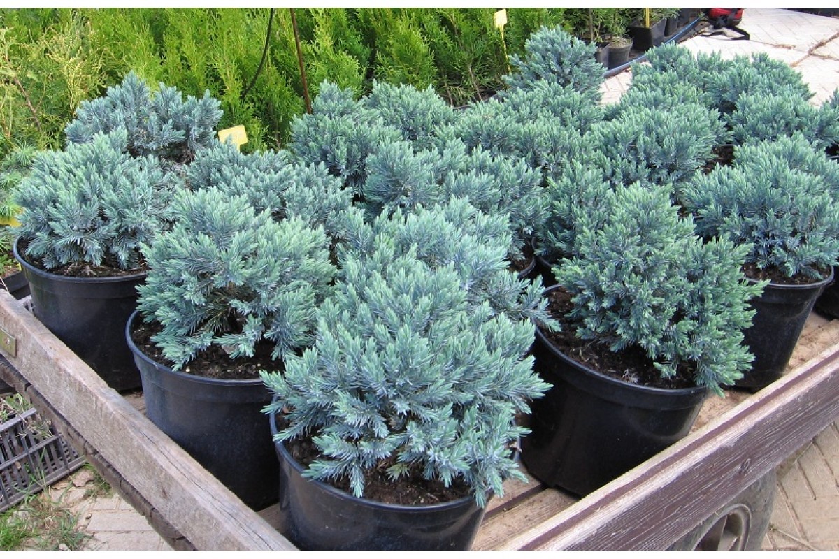 - Blue Chip («Блю Чип»). Карликовый подвид, в ширину разрастается больше метра, высотой до 30 сантиметров. Низкая скорость роста, иголки красивого голубого цвета, довольно колючие. Хорошо переносит даже очень низкие температуры, предпочитает хорошее освещение. Не стоит допускать чрезмерного полива и застоя воды.