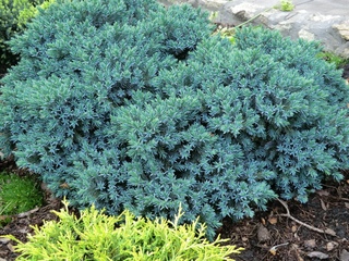 Кустарник высотой 30 см и диаметром 2,5 м. Хвоя летом голубая, зимой становится рыжеватой. Один из самых распространенных сортов. Его даже используют для укрепления склонов!