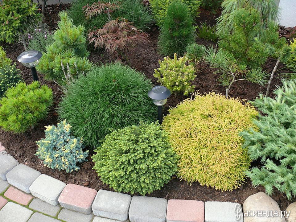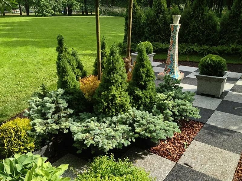 Используется для оформления декоративных элементов в саду, при создании альпинариев и хвойных композиций.
