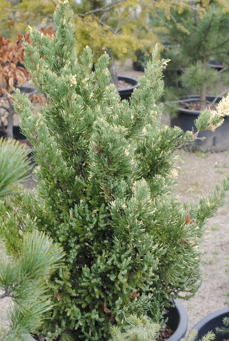 В результате формируется выражено асимметричная, раскидистая, привлекательная своей “неправильностью” крона. Хвоя – чешуевидная, плотно сидящая на побегах насыщенно-зеленая хвоя. Молодые приросты отличаются незначительно. Обильно плодоносит; шишкоягоды в период зрелости фиолетовые; служат дополнительным украшением растения. От этой формы получен более медленно растущий культивар “Variegated Kaizuka” (“Вариегатед Кайзука”) со схожими характеристиками; его хвоя имеет кремово-желтые отметины. Оба растение следует сажать только на хорошо освещенные места, даже при небольшом затенении побеги излишне вытягиваются, что негативно сказывается на декоративности можжевельника. К почвам растения нетребовательны, растут любых умеренно питательных и увлажненных садовых грунтах. Зимостойкость высокая. Зона 4. Деревца со столь необычным, даже – экзотичным обликом явятся выразительным солитером на газоне; их можно использовать при оформлении каменистого, верескового и японского сада, подпорной стенки, склона, опушки леса.