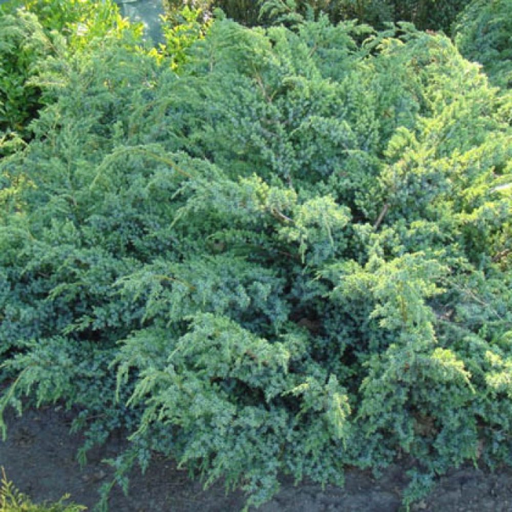 Скелетные ветви толстые, разрастаются в стороны равномерно, сильно ветвятся, особенно на концах, отходят от центра куста под острым углом и направлены вверх. Боковые побеги и концы скелетных ветвей слегка поникшие. Крона компактная, правильная, симметричная, у молодых экземпляров – широкопирамидальная, у взрослых растений – вазообразная. Хвоя – игловидная, около 1 см длиной, очень жесткая, даже – грубая, колючая, окрашена в серебристо-голубой или голубовато-зеленый цвет. Молодые приросты отличаются незначительно. Обильно плодоносит. Растение светолюбиво; в условиях даже небольшого затенения ветки излишне вытягиваются, крона становится рыхловатой, теряет свой красивый, четкий контур. К почвам кустарник нетребователен, но лучше растет на не тяжелых, умеренно увлажненных и питательных супесях. Отличается высокой морозостойкостью. Зона 3. Относительно крупные габариты растения предполагают использование кустарника, в основном, в больших садах. Можжевельник можно посадить в каменистый и вересковый сад, на склон и опушку леса, в свободно растущую живую изгородь.