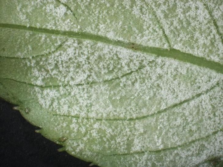 ОписаниеБелый порошкообразный грибок на листьях и побегах. Обе листовые поверхности могут быть поражены.