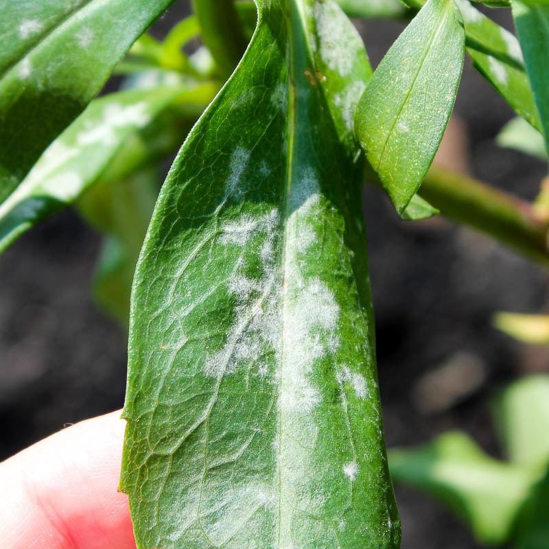 Растения, растущие в затененных местах, с плохой циркуляцией воздуха или сухой почвой, могут быть подвержены мучнистой росе.