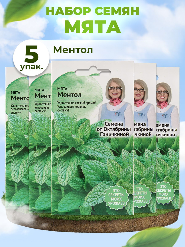 Семена мяты от Октябрины Ганичкиной — кандидата сельскохозяйственных наук, автора книг и статей на тему огородничества.Эта пряная зелень с удивительно свежим ароматом идеально подходит для успокаивающих чаёв и прохладительных напитков. А ещё мята удачно дополнит блюда из баранины, салаты и всевозможные десерты.Сорт среднеспелый: период от всходов до сбора урожая — 90 дней. Растение многолетнее, на одном месте выращивается 4–5 лет. Формирует разветвлённый кустик высотой 65 см. Лист среднего размера, овальный, с зубчатым краем, зелёный со слабой антоциановой окраской. Облиственность высокая. Цветки сиреневые. Урожайность зелёной массы — до 2 кг/м2.