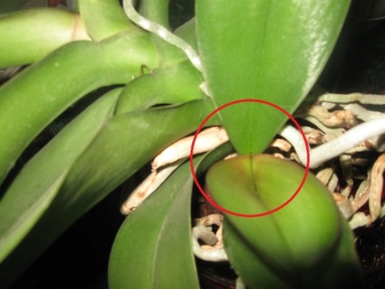Бывает, что орхидея пускает прикорневую детку, которая появляется из центра ствола, где тянется основная прожилка.