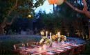 5. Позаботьтесь об освещении. Если дачная вечеринка запланирована на вечер – важную роль играет освещение. Очень красиво выглядят фонарики или светильники с фотоэлементами развешанные на ветвях деревьев. Необыкновенное настроение поможет создать пламя самой обычно чайной свечки, размещенных в цветных стеклянных подсвешниках или обычных баночках.