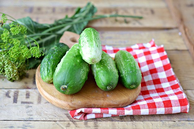 Залог успешной консервации – правильный выбор главного ингредиента. Идеальным вариантом станут небольшие (до 13 см), ровные, упругие, ярко-зеленого цвета плоды с бугорками. С такими огурцами заготовка получается особенно вкусной, а банки практически никогда не взрываются.