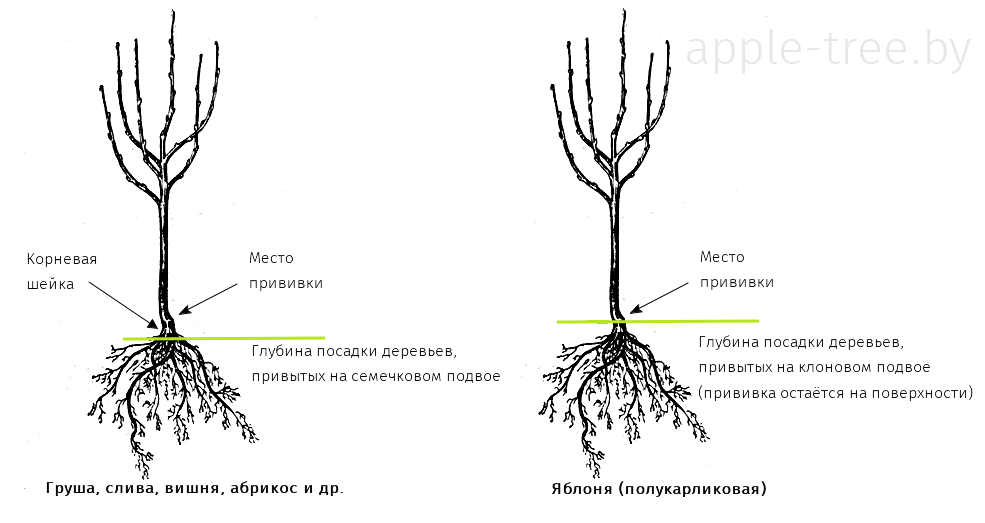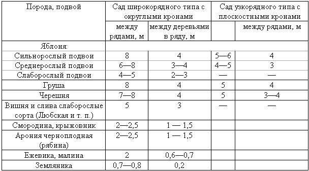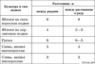 В зависимости от характеристик подвоев между деревьями оставляют дистанцию: