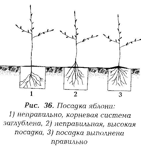 Самыми высокими (до 7-8 м) и раскидистыми вырастают яблони, привитые на сильнорослые, в том числе семенные, подвои. У этих деревьев сильные корни, уходящие глубоко в почву. Поэтому их можно посадить только в тех местах, где грунтовые воды не поднимаются выше 3 метров. Сильнорослые яблони обычно располагают на расстоянии 5-6 метров друг от друга, а иногда и дальше.