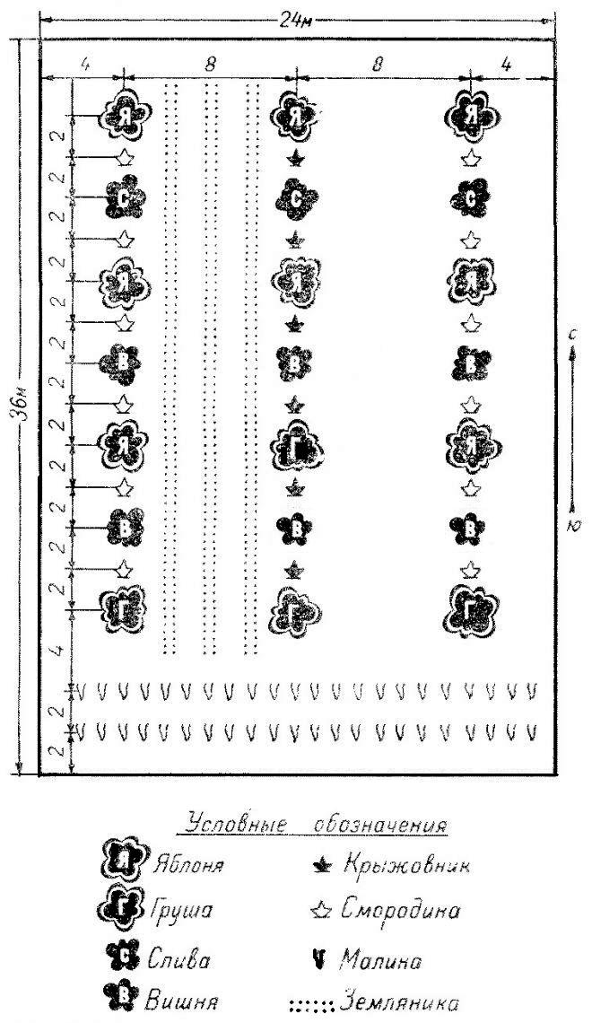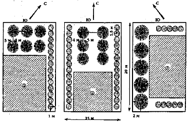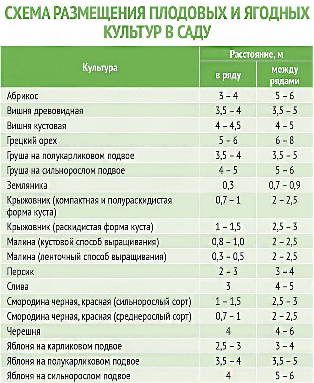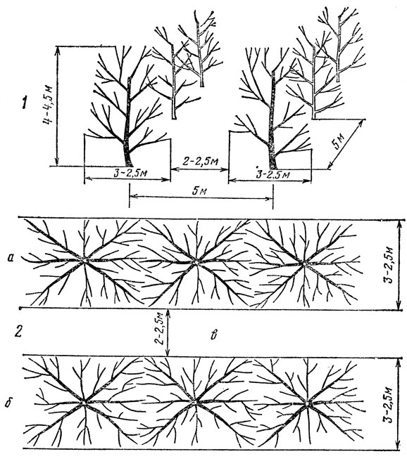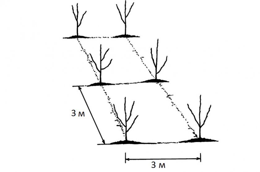 В старых промышленных садах была принята квадратная схема посадки, в современных чаще применяется прямоугольная. Для приусадебных участков подходит любой порядок размещения растений при условии соблюдения минимального расстояния между ними.