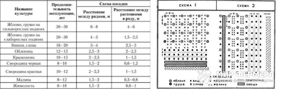 Сводная таблица с рекомендуемыми схемами посадки для различных сортов яблонь