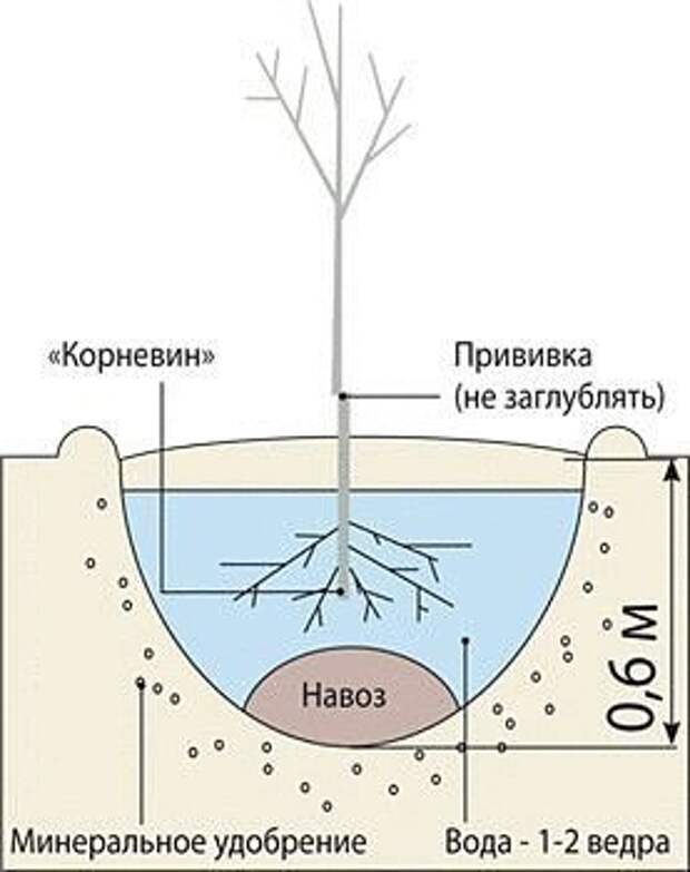Для сортов на полукарликовых подвоях рекомендуется придерживаться схемы посадки 5х3 м, то есть оставлять расстояния в междурядьях 5 метров, а между деревьями в ряду 3 метра; для карликовых разновидностей культуры стандартная схема – 4х1,5 м.