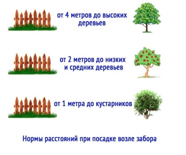 Смысл этих нормативов в том, чтобы кроны растений не затеняли земли соседей и не загораживали окна жилых построек, а их корни не разрушали фундаменты и подземные коммуникации. Согласно СНиП, высокорослые яблони можно располагать не ближе 4 м от ограды соседнего участка и не ближе 5 м от капитальной жилой постройки. Для среднерослых и низкорослых растений соответствующие требования составляют 2 м и 1 м. Однако предусмотрительные и здравомыслящие хозяева при планировании посадок руководствуются не столько нормативами, сколько реальной высотой деревьев, и стараются располагать каждое растение так, чтобы в случае падения крона не задела хотя бы соседский дом.