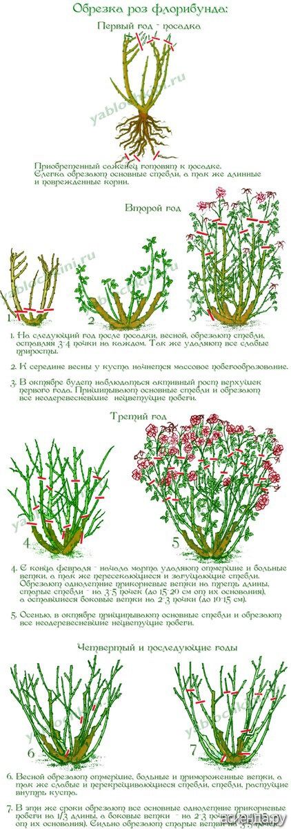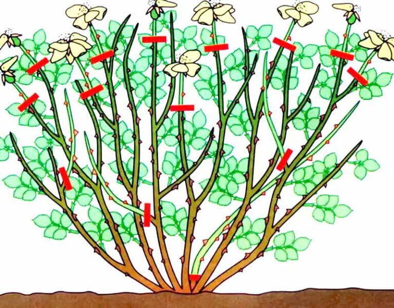 Затем удалите слабые, тонкие побеги, побеги, растущие к центру куста, более слабые из двух перекрещивающихся побегов, побеги, которые растут вверх, а затем вверх, и присоски, если они есть. Наконец, обрежьте все оставшиеся побеги до половины их прежней высоты.Миниатюры — Весной лучше всего обрезать миниатюры почти до земли (т.е. 2-3 дюйма). Кроме того, если они старше трех лет, рекомендуется разделить их, разрезав все растение пополам или более. Не забудьте оставить несколько корней на каждой части. Старомодные (под старину) и кустарники — Удалите все отмершие побеги и слегка обрежьте остатки куста, удалив около трети роста. Целью этих роз является массовое цветение. Рекомендуется дополнительный легкий уход в течение года, поскольку вечноцветущие сорта цветут на новой древесине. Сорта, которые цветут только один раз за сезон, следует обрезать ПОСЛЕ того, как они отцвели, так как они цветут на старой древесине. Общее — Если кусту больше двух лет, срежьте один или несколько самых старых и больших стеблей с помощью кольцевой пилы. Этапы обрезки роз — осень Осенняя обрезка легче, чем весенняя, и заключается в удалении веточек и непродуктивных побегов, а также любых пересечений или мертвых побегов. Вся листва в это время остается на кусте. День труда — хорошее время, чтобы заняться осенним уходом. Вьющиеся растения не обрезают таким же образом, как чайно-гибридные. Чтобы стимулировать рост большего количества цветущих боковых побегов и стимулировать производство новых побегов, вы не должны обрезать длинные побеги, если только они не перерастают отведенное место. Сорта различаются в этом отношении, поскольку некоторые из них каждый год производят новые побеги от основания, в то время как другие создают древесную структуру и производят длинные новые побеги с более высокого положения на растении. Таким образом, при обрезке рекомендуются следующие приемы: Вечноцветущие сорта — Обрежьте до двух или трех глазков все боковые побеги, которые цвели в прошлом году. Рамблер и однократно цветущие сорта — Эти сорта следует обрезать после цветения, так как они обычно цветут на однолетней древесине. Таким образом, после весеннего цветения вырезают старую, непродуктивную древесину и слабые побеги. Хорошей практикой является избегать сильной обрезки в течение первых двух или трех лет после посадки, так как большинству вьющихся растений требуется столько времени, чтобы созреть. В течение этого периода удаляйте все мертвые и слабые побеги и увядшие цветы (в некоторых случаях лианы цветут очень мало в течение первых двух лет). Новые побеги большинства лиан должны быть направлены горизонтально, чтобы стимулировать рост цветущих боковых побегов. Летний уход за розами Лето – самое важное время года для постоянного ухода за розовыми кустами. Большинство людей имеют тенденцию расслабляться из-за увеличения других видов деятельности. Чтобы кусты были здоровыми и продуктивными, они должны иметь воду. Обычно рекомендуется от одного до двух дюймов в неделю. Следите за грядками рядом с забором или домом, даже после сильного дождя велика вероятность, что они останутся сухими. Поддерживайте систематическую программу опрыскивания. Для поддержания влажности на грядках держите на грядках мульчу. В летние месяцы грибковые заболевания не так распростране