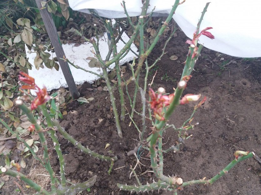 Конечно же, зимой розы могут подмерзнуть, еще их может поломать под тяжестью снега, или под укрытием может начаться развиваться инфекция — инфекционный ожег. Именно эти неприятности мы боимся увидеть, открывая весной розы. При этом, открывать их сразу нельзя. Иначе в мерзлой земле и под ярким весенним солнцем мы можем погубить даже то, что хорошо перезимовало зимой. Для меня главный критерий – оттаявшая земля.