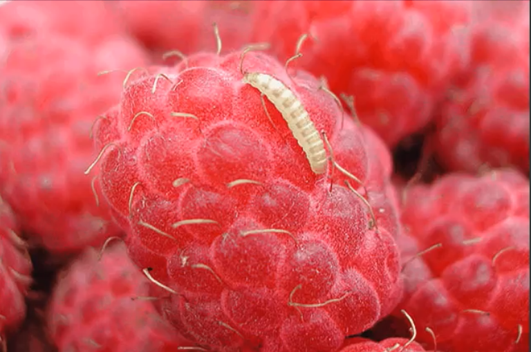 Эти вредители, также известные как малиновые плодожорки, паразитируют на плодах и встречают неосторожных потребителей неприятным сюрпризом.