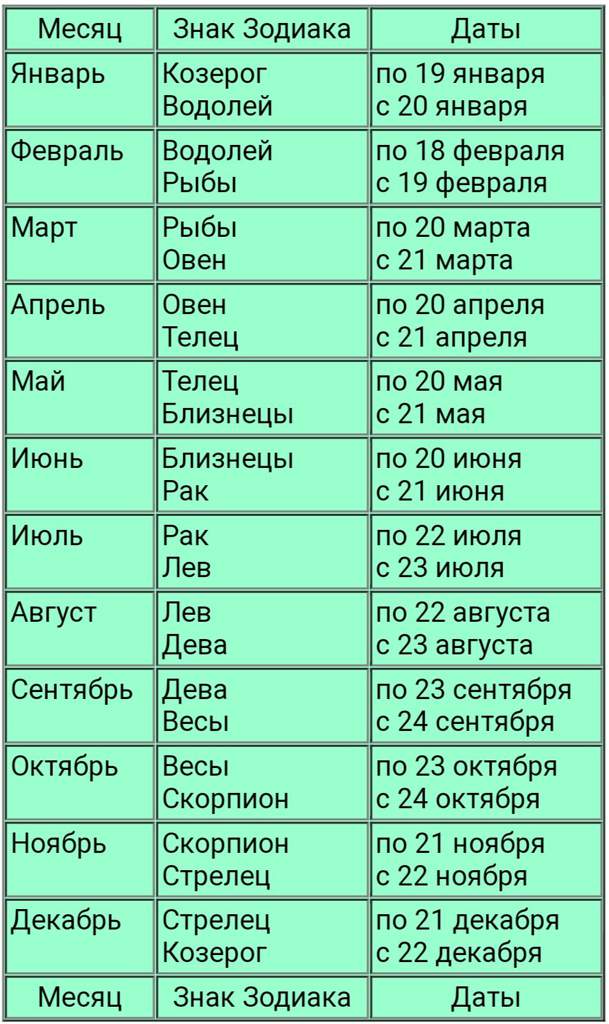 знак зодиака в начале и в конце месяца