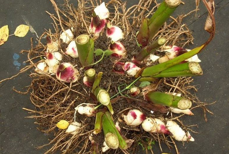 Клубни канны очень похожи на корневища имбиря, не зря они родственники.