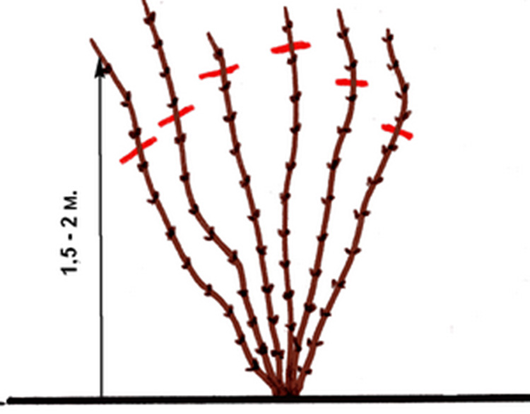 - Применяйте комбинированную обрезку: один побег обрезайте до 1,5 м, а растущий рядом с ним – до 2-4 почек.