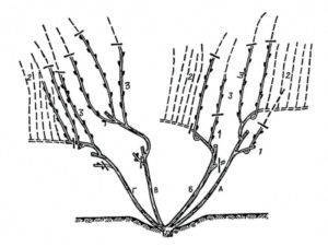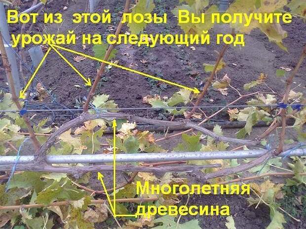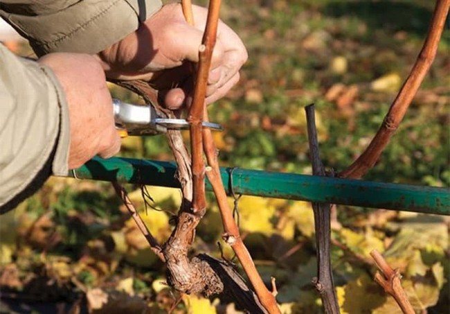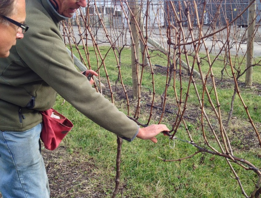Убедитесь, что два ответвления, которые вы оставляете, — это новые ветви, указывающие на вашу решетку. Виноградная лоза старше 2 лет вряд ли даст больше плодов.