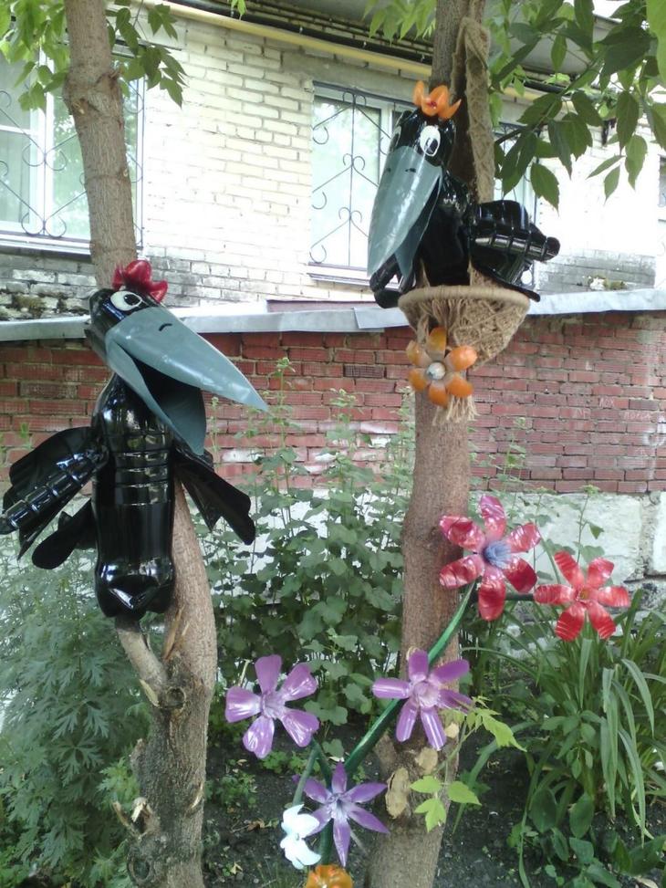 Многие владельцы приусадебных участков создают всевозможные изделия из пластиковых бутылок, чтобы украсить место своего пребывания. Можно создать настоящие произведения искусства, потратив минимум средств.