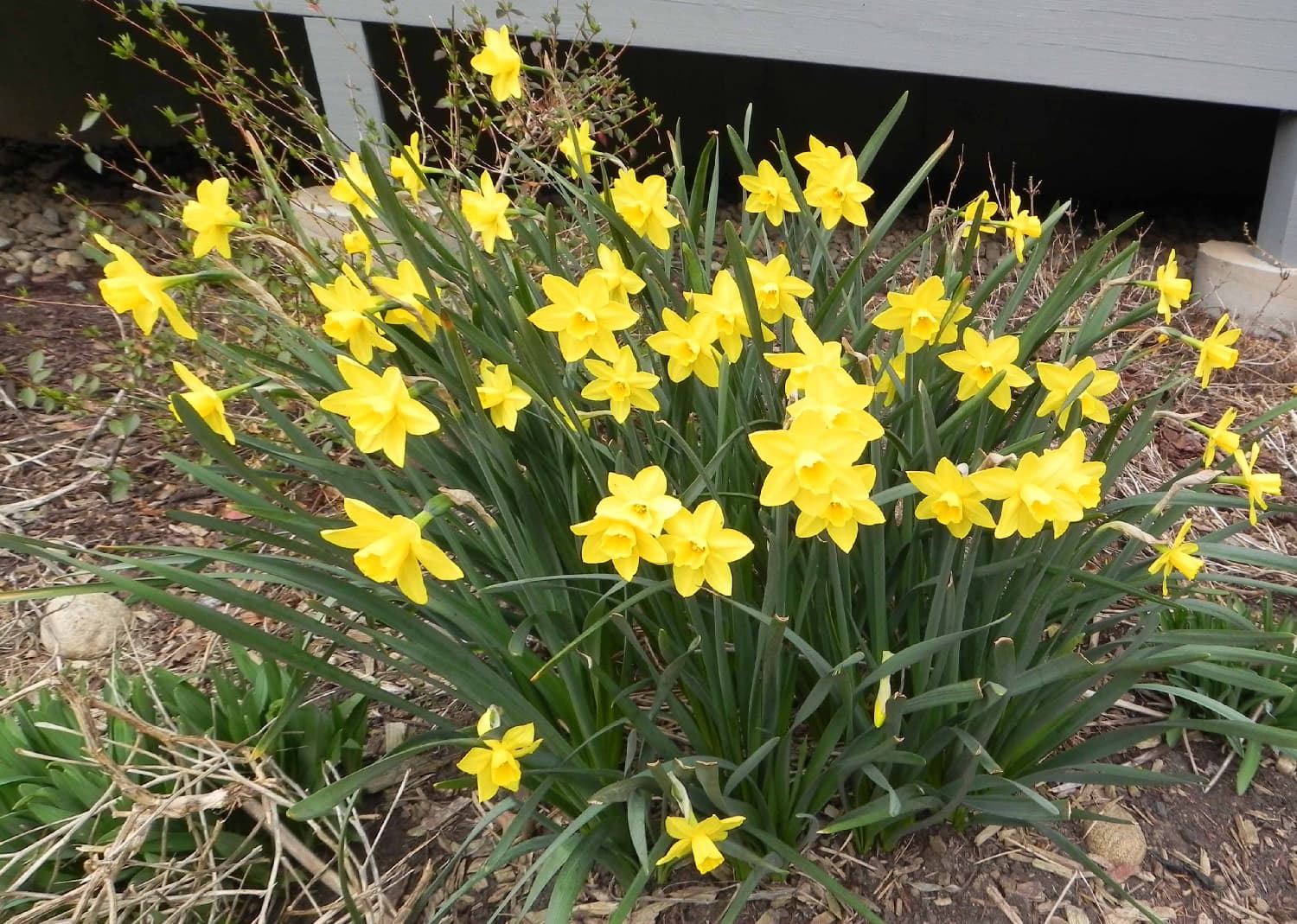 нарциссы среди моих многолетников. Это обеспечивает окраску перед многолетниками.