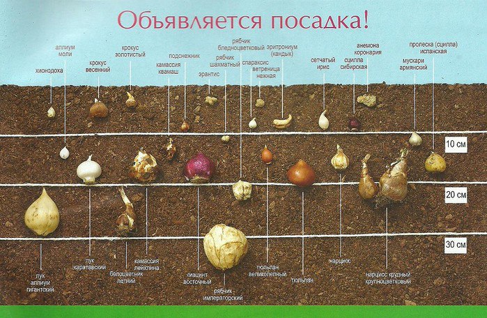 Что касается глубины, то возьмите на заметку следующую информацию: глубину посадки определяет размер луковицы.