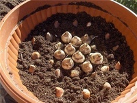 Луковицу высаживают донцем вниз, слегка поливают, засыпают смесью грунта с песком, слегка утрамбовывают и вновь поливают.
