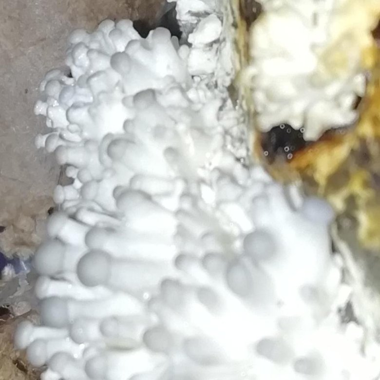 Эта белая манка похожая на выросты кожицы, скорее всего, является так называемым вторичным мицелием — грибница при неблагоприятных условиях формирует зачатки плодовых тел.