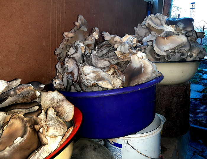 Вешенка может расти и при низкой температуре (особенно зимние штаммы). При +5-8 градусов в зале выращивания, СО2 выделяется меньше, так как сростки растут медленно.