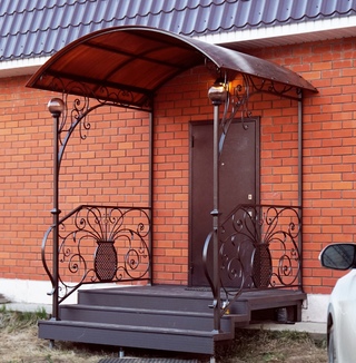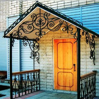 Безусловно, ковка – это очень дорого. Однако, чтобы придать входу благородный вид совсем не обязательно сооружать целиком кованый навес, достаточно добавить несколько декоративных элементов, которые могут на глазах преобразить общий вид строения.