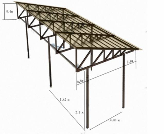 Чертеж навеса под профлист или шифер