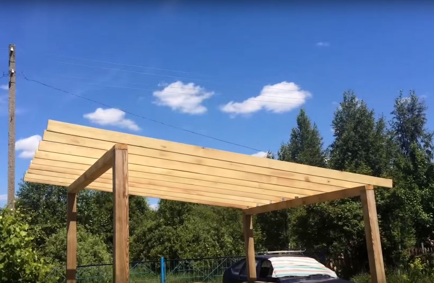 Самостоятельно выбирая из чего сделать навес, можно позаимствовать идеи изучив постройки, продающиеся в сборке для последующего монтажа, или использовать привычные и недорогие расходники: