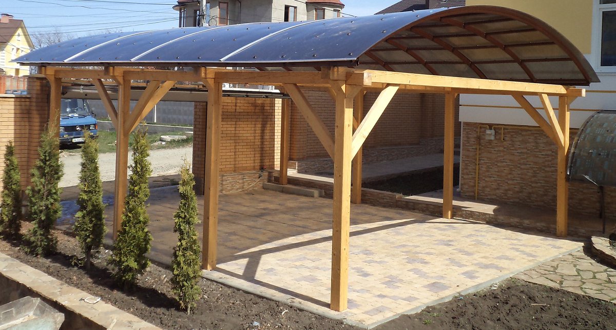 Кроме вертикальных опор конструкция состоит из крыши, для которой можно использовать еще больше материалов, благодаря современным технологическим разработкам и большому разнообразию предложений на рынке.