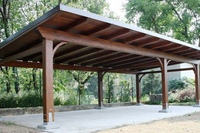 - открытые. По конструкции такие сооружения представляют собой несколько опор вертикальной ориентации с легкой крышей из различных материалов, оп периметру можно установить перголы или высадить зеленые насаждения;