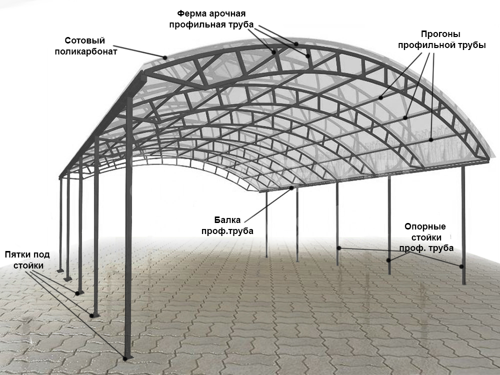 Они используются для самых разных целей: как стоянка, складское помещение и многие другие варианты.Конструктивно навес предельно прост.это