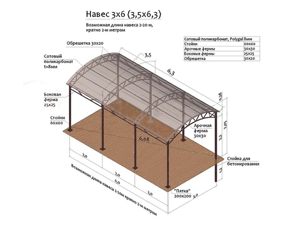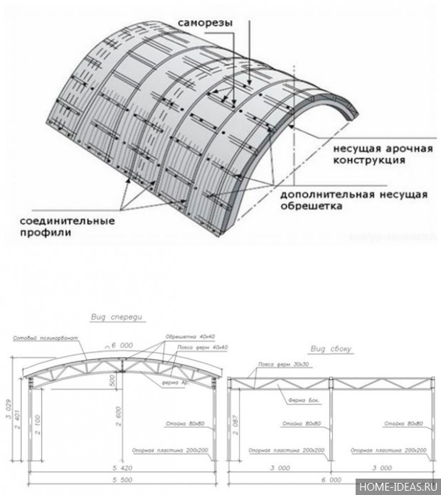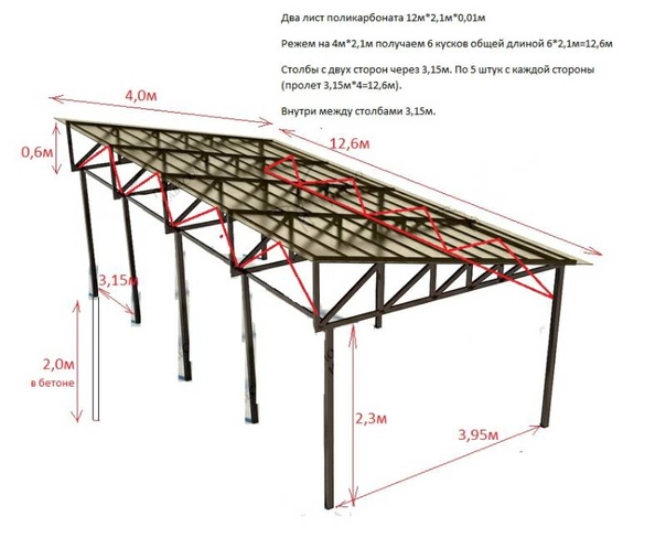 Навесы из поликарбоната своими руками: фото, схема монтажа, видео
