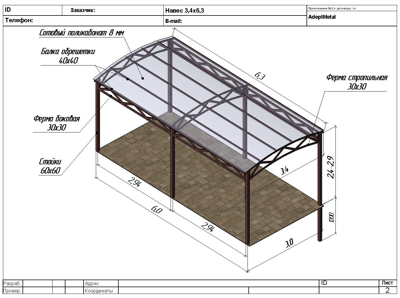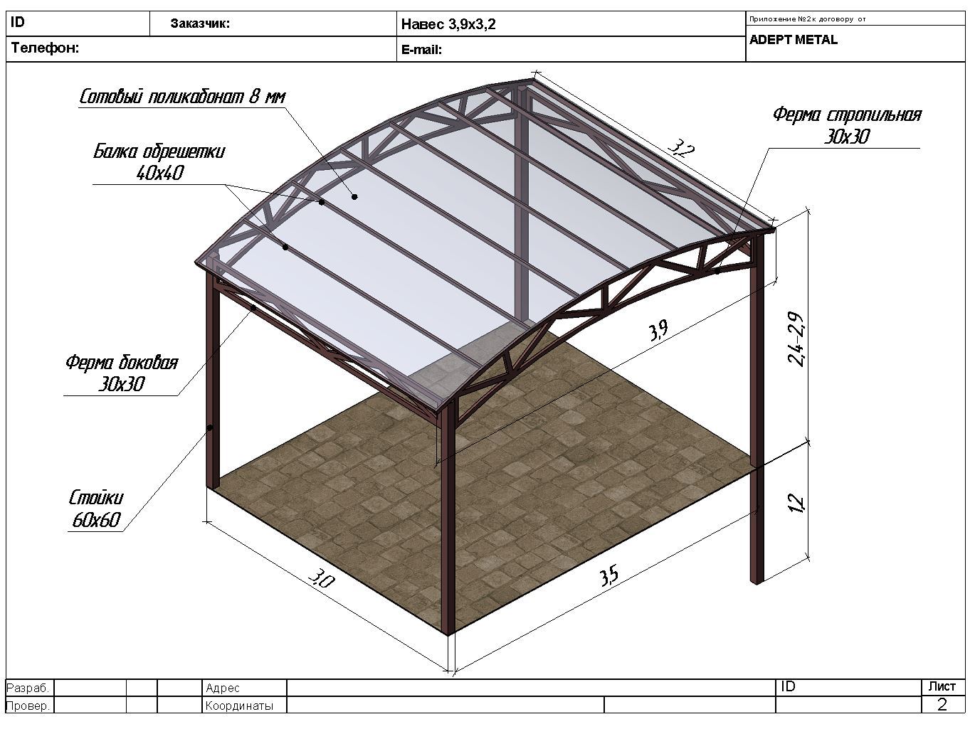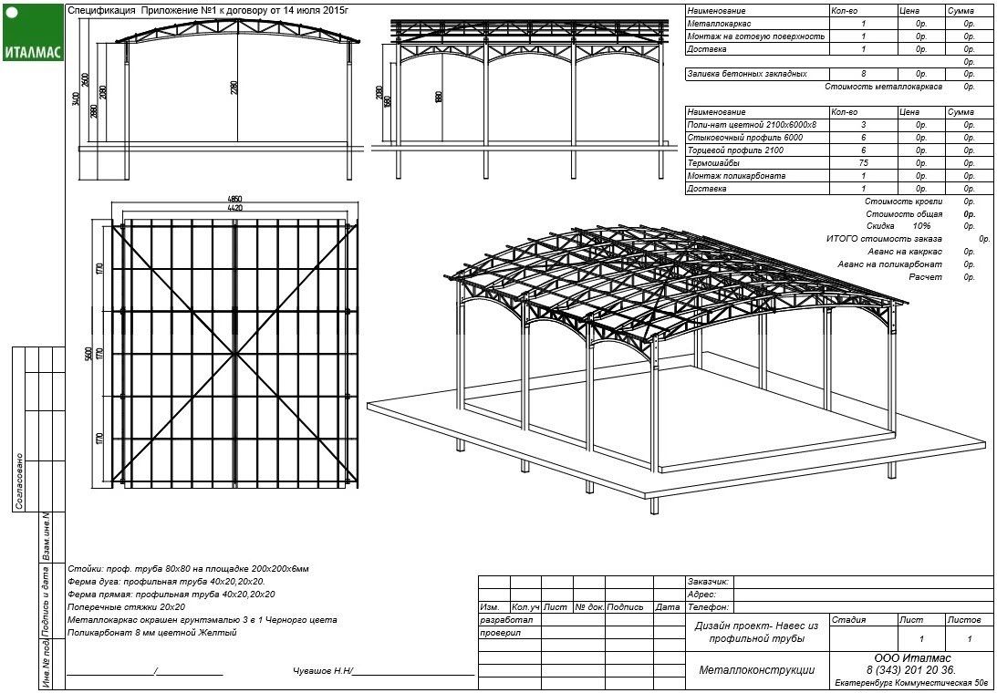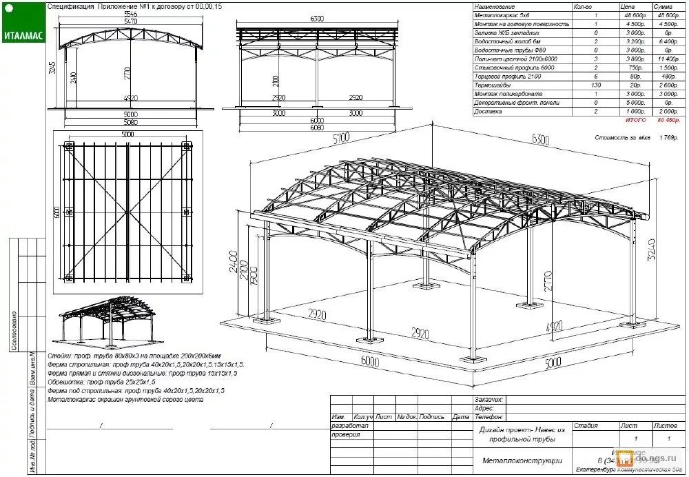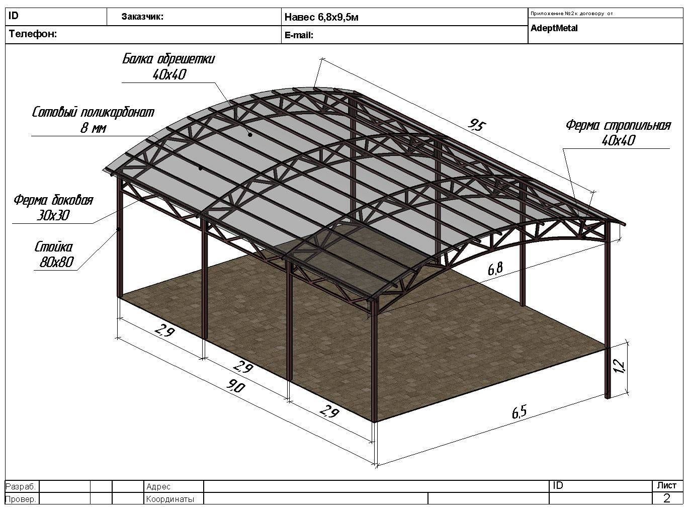 Чертеж навеса, выбор схемы